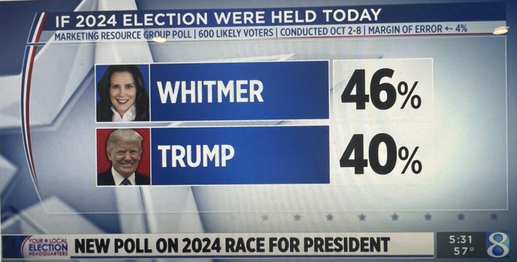 In 2020, Biden won Michigan by 3 points. In 2022, Whitmer won re-election there by 11 points. Her popularity that year also turned both houses of the Michigan state legislature blue for the first time in 40 years.